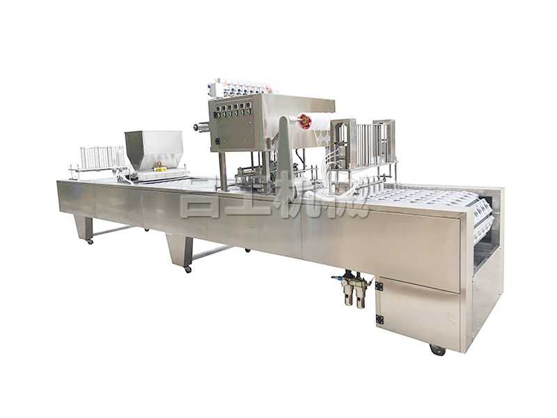 鋁箔杯灌裝封口機適用于各種盒裝產(chǎn)品的包裝,能自動落盒、充填水、充填物料、紫外線消菌、光電定位、兩次氣動熱封、自動剪切及整列出盒等功能。整機可采用編程邏輯控制器、氣動控制元件、智能數(shù)顯溫度控制系統(tǒng),具有封口強度高,密封性好,故障率低等特點,是企業(yè)自動化生產(chǎn)的良好產(chǎn)品,按照客戶要求可以定做特殊規(guī)格的機器。